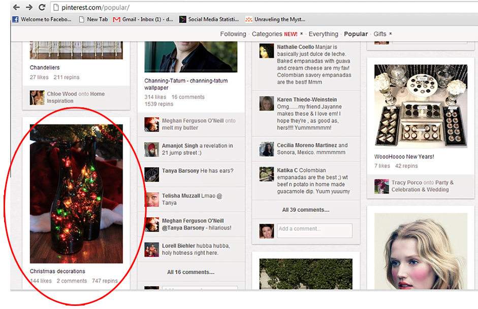 This particular photo was from a post I did back in December of 2010, way before I even started using Pinterest, and therefore wasn’t one of the items I had pinned. In fact, if you perform a search for Christmas wine bottle on Pinterest it may still appear intermingled with some of the other images. Someone else had obviously shared it from my website and sent it semi-viral.